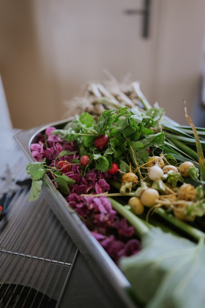 La production de fleurs qui décorent le restaurant est située à 300m de l’établissement. Florence cultive des fleurs à bouquets et comestibles de saison, sans intrants chimiques et privilégie les espèces anciennes, locales, spontanées et reproduit par semis, multiplication, division et bouturage.